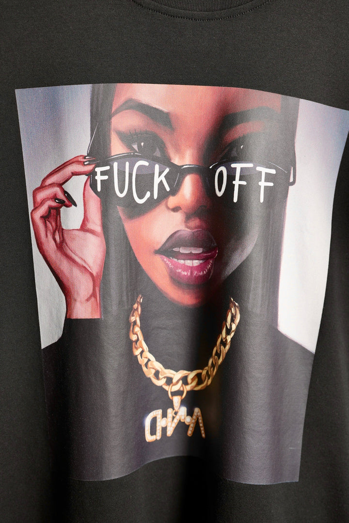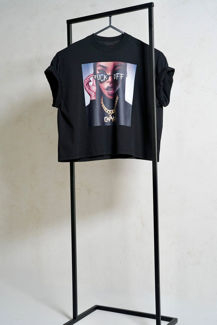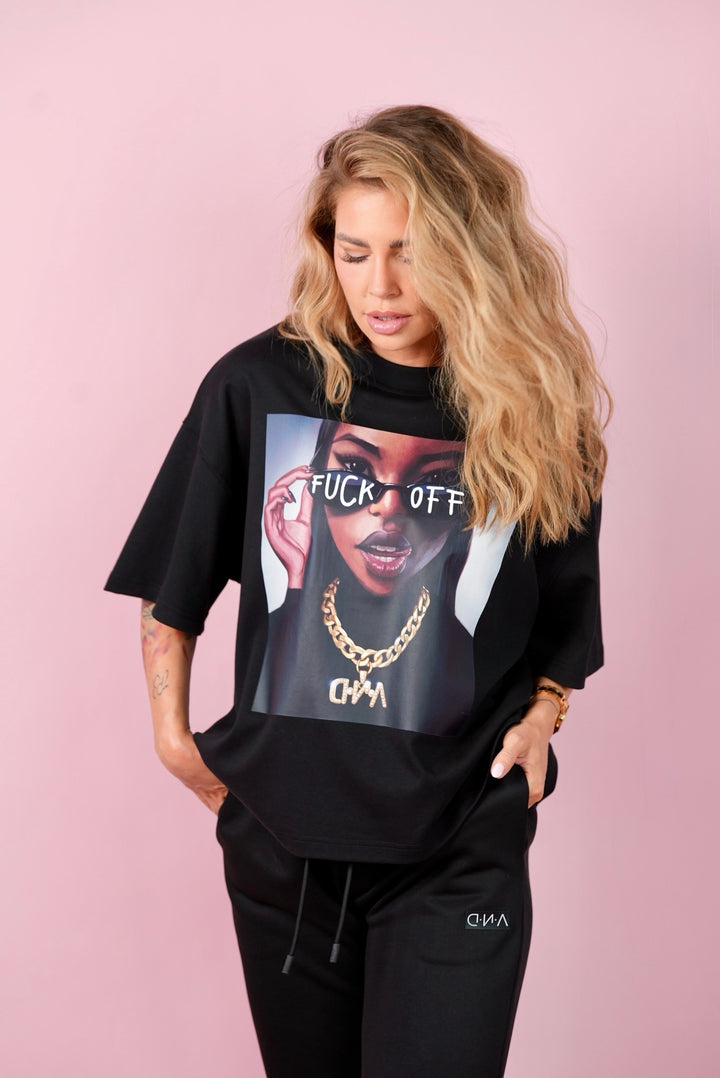 The oversized t-shirt with the author's illustration "F-OFF" from D.N.A is made of a comfortable cotton material with a higher grammage. The new summer material will blend with your body and you will adore it! The t-shirt is in a standard long length in an oversized design with a round neckline and dropped shoulders.